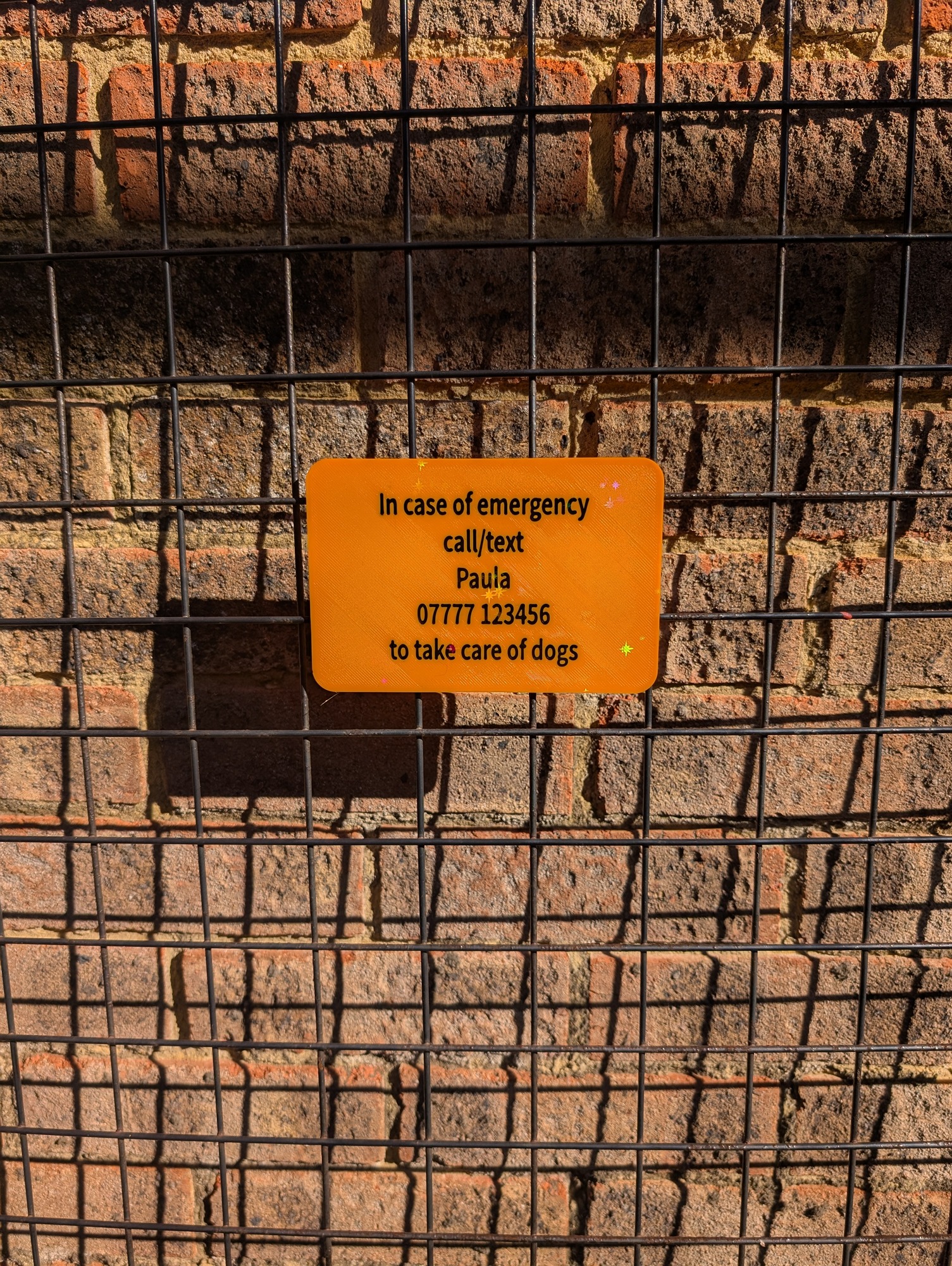 After an unfortunate incident at a dog show I started printing cage plates with emergency contact details. I've now moved on to designing and printing my own ideas and am happy to try and print yours.